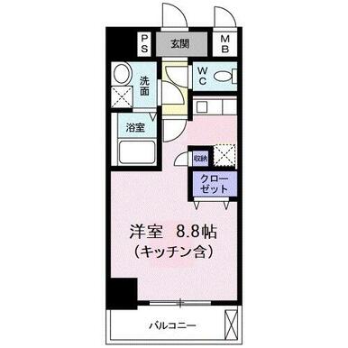 | 間取り | ワンルーム(洋8.8) | 主要採光面 | - |
