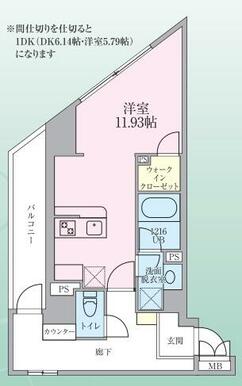 1DK(DK6.14・洋室5.79) |